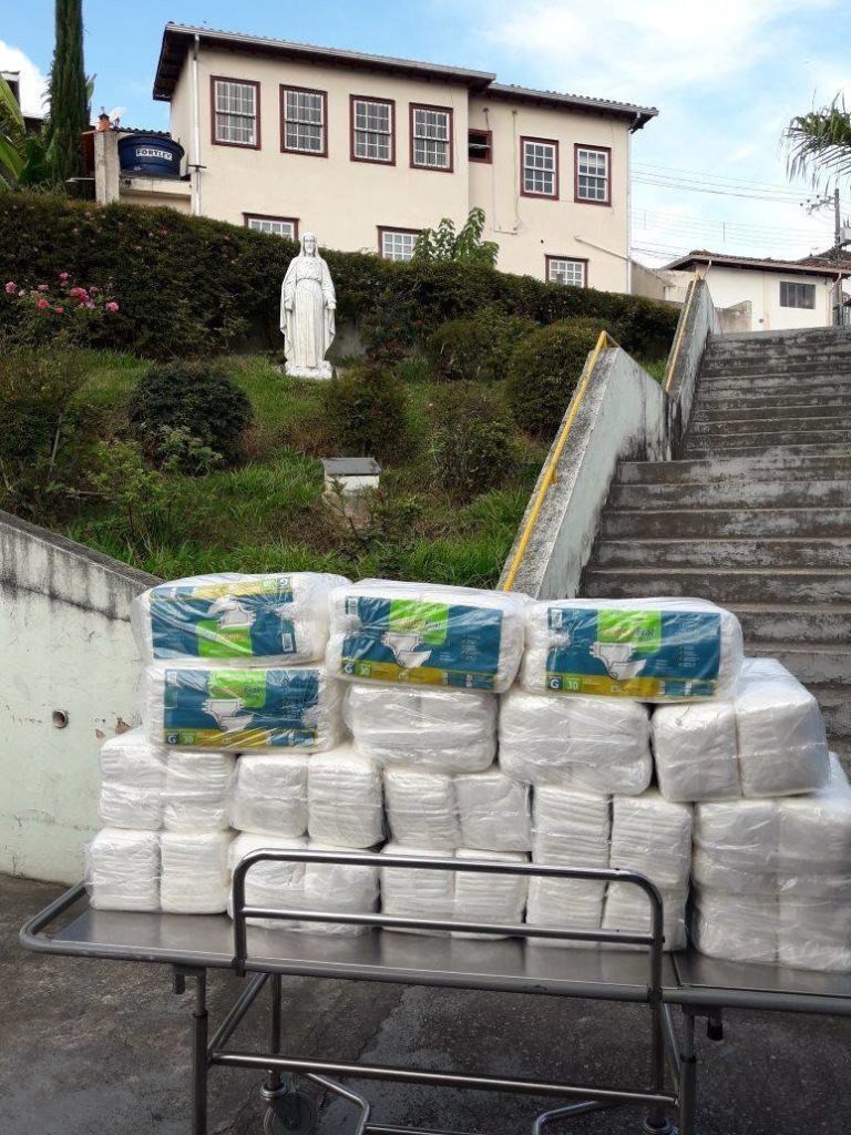 Realizamos a doação de 1080 fraldas geriátricas ao Lar São Vicente de Paulo, em Ouro Preto/MG. A Turin Transportes assume e cumpre o compromisso de responsabilidade social com ações mensais.