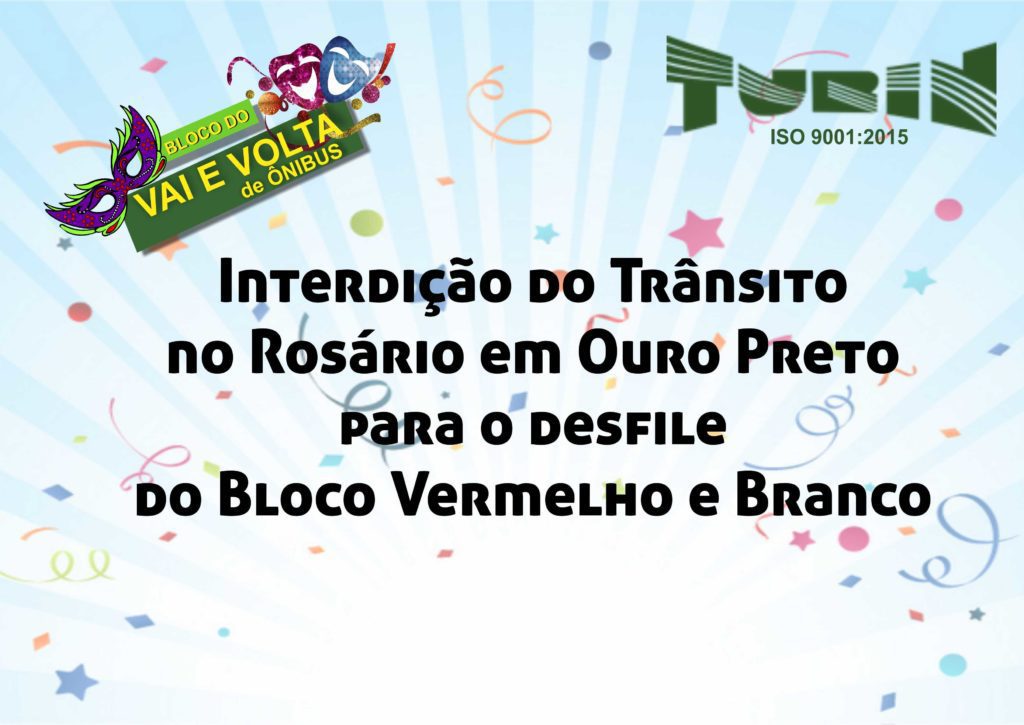 Interdição do Trânsito no Rosário em Ouro Preto para o desfile do Bloco Vermelho e Branco