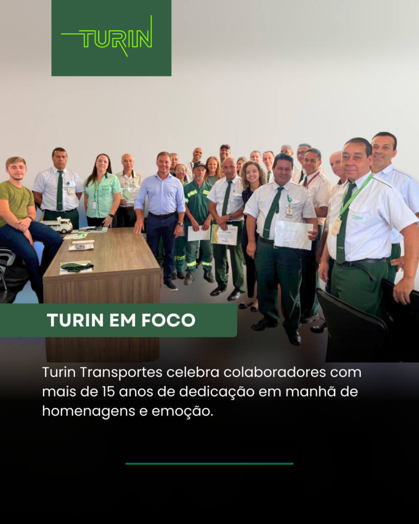 Na manhã desta quinta-feira, 13 de novembro, a Turin Transportes realizou uma homenagem especial aos colaboradores que completaram mais de 15 anos de empresa, reconhecendo a trajetória de profissionais que ajudaram — e continuam ajudando — a construir a história da empresa com compromisso, respeito e dedicação.