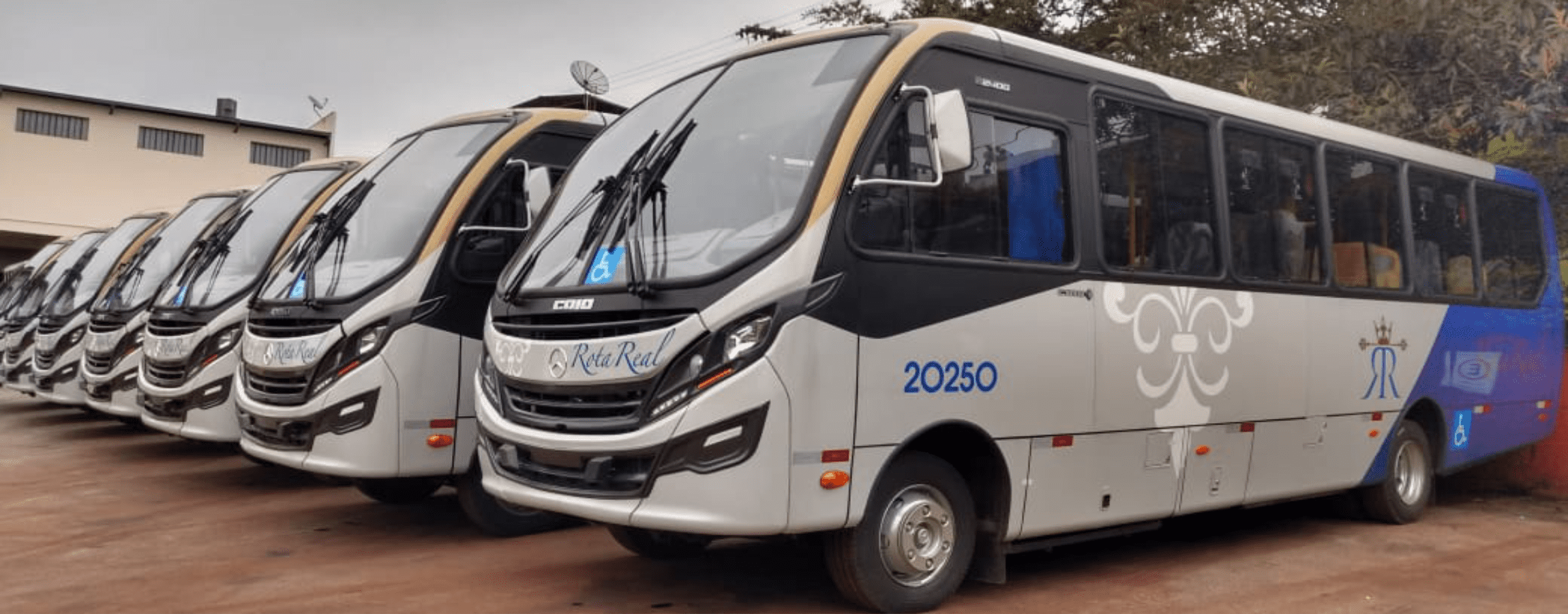 Atuação no segmento de transporte coletivo de passageiros urbano com 100% das linhas operando em toda a cidade através do Consórcio Rota Real.